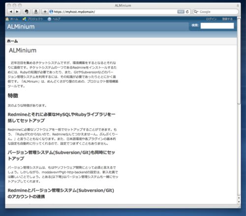 概要 ALMiniumとは、ALM(Application Lifecycle Management)とRedmineの合金(..nium)という意味で、Redmineを利用してALMを実現するためのツールです。簡単なインストーラで、Redmine・Subversion・Git・Mercurialなどプロジェクト管理に必要なツールを一通…